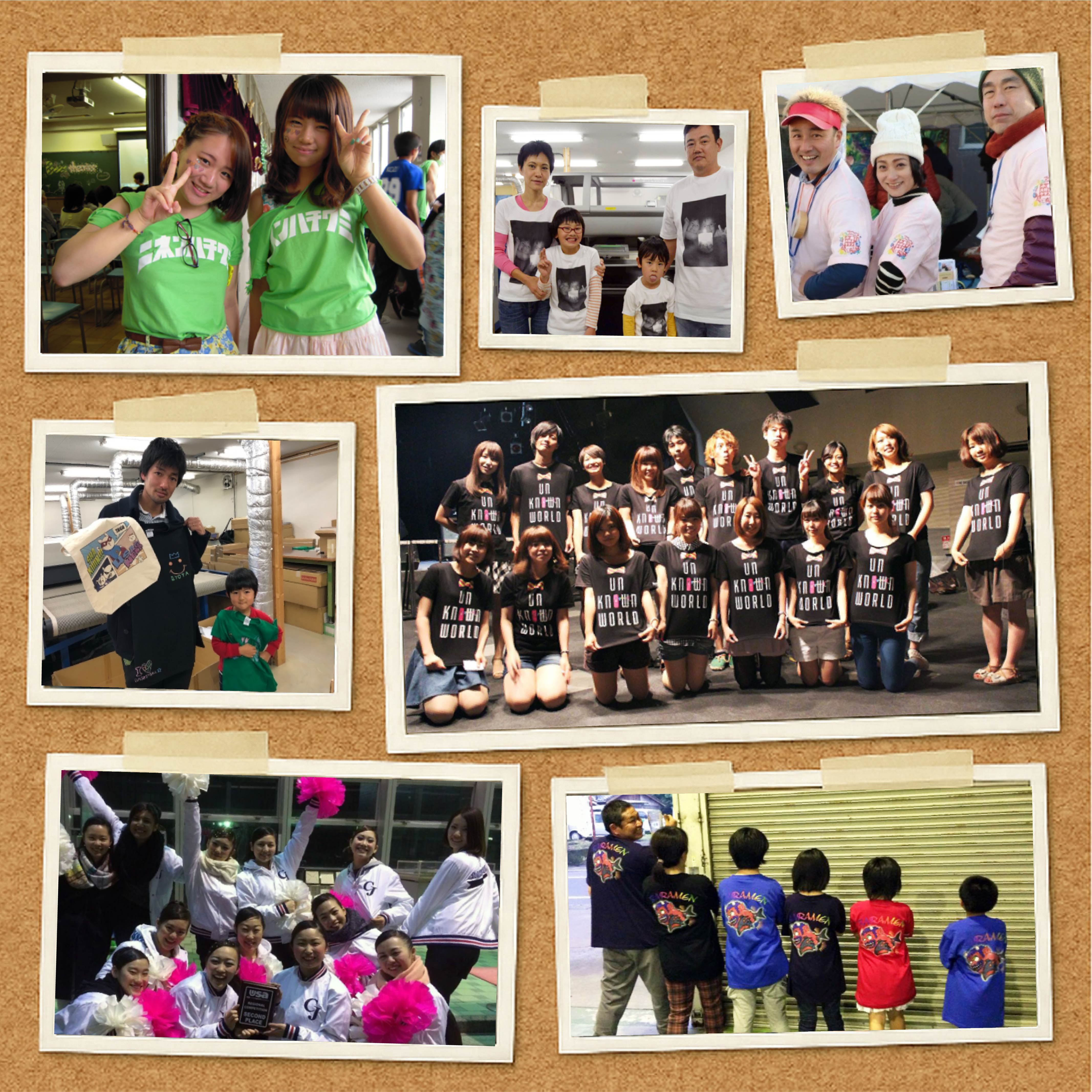 企業の販促物はもちろん、アーティストのライブT シャツ、地域イベントの記念グッズ。