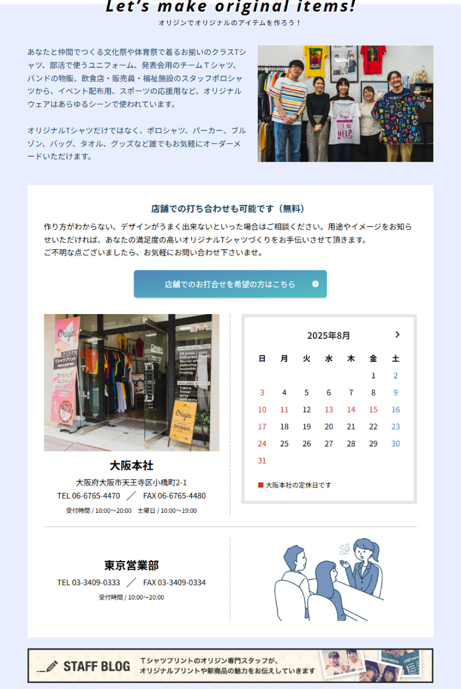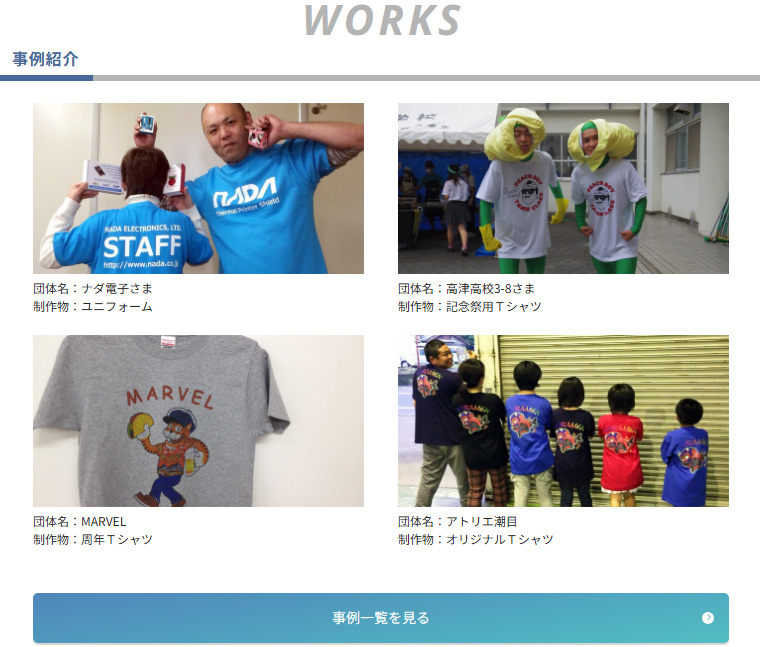 企業の販促物はもちろん、アーティストのライブT シャツ、地域イベントの記念グッズ。