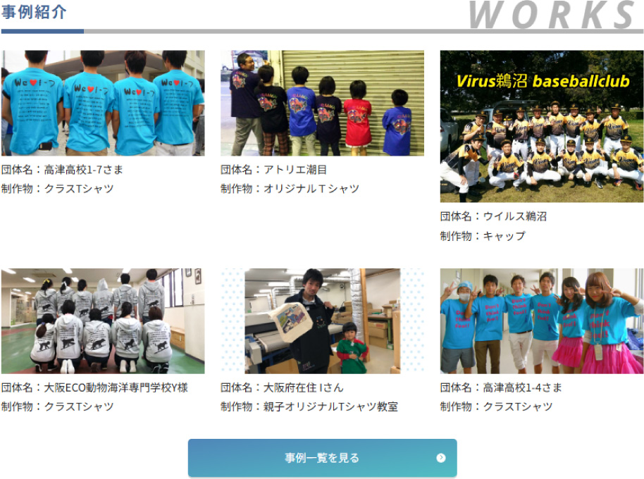 企業の販促物はもちろん、アーティストのライブT シャツ、地域イベントの記念グッズ。